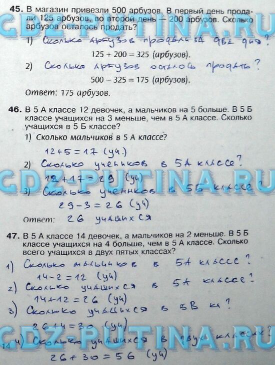 Спишите решения и ответы на задачи из рабочей тетради Потапова и Шевкина. В домашней работе по математике за 5 класс представлены часть 1 (№1-№153) и часть 2 (№154-№358). Онлайн решебник удобен и быстр в использовании, таблица позволяет списать готовые задания даже на уроке математики. ![]() |