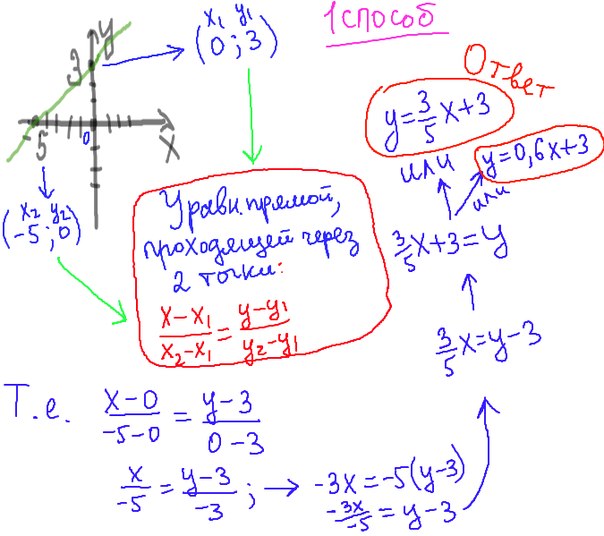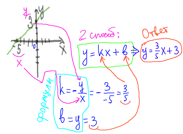 Решение задания по математике 7,8,9 класс: Нахождение коэффициентов графика линейной функции по рисунку.