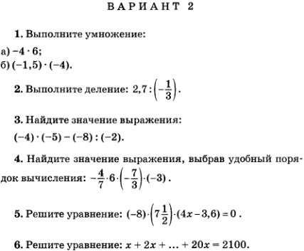 Контрольная работа по математике за 6 класс - Свойства действий с рациональными числами