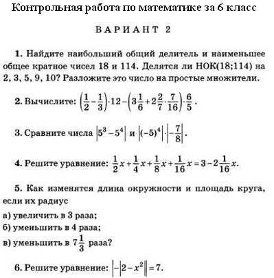 • Контрольная работа по математике 6 класс: Действия с дробями