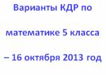 Варианты КДР по математике 5 класс - 16 октября 2013 год