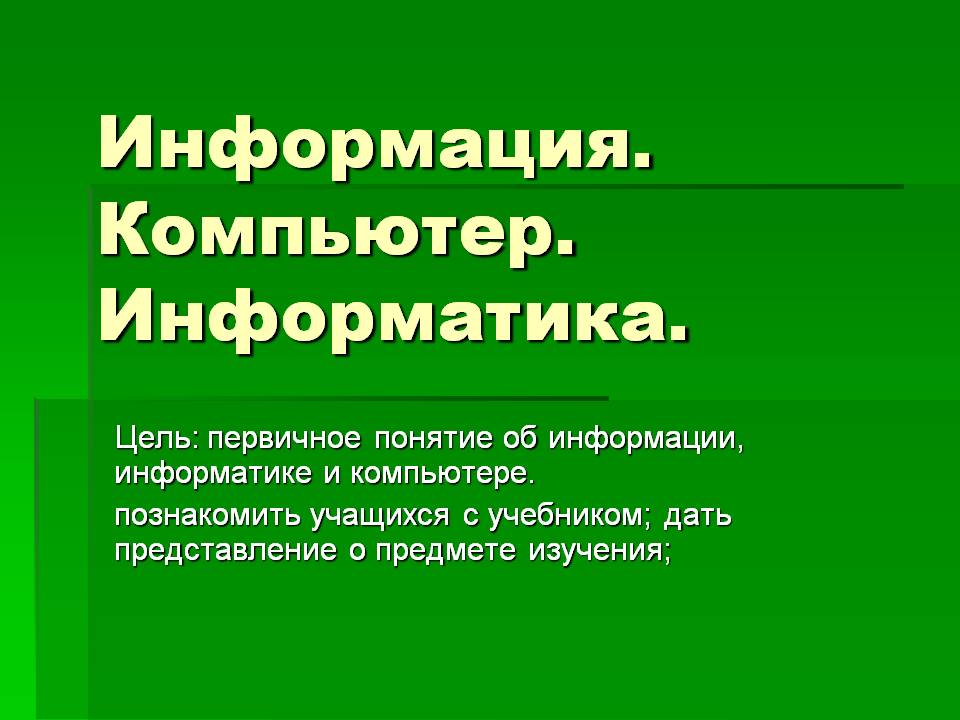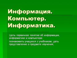 Презентация по информатике 8 класс - Информация, компьютер, информатика