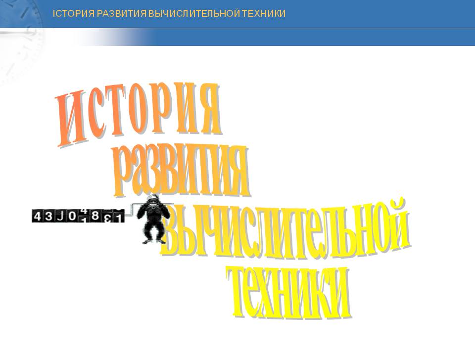 Данная презентация по информатике за 9 класс содержит 17 слайдов, в которых рассказывается об истории развития вычислительной техники. В начале говорится о предметах счета древних людей - об абаке, о счетах в Китае и Японии. Затем рассказывается о логарифмической линейке, о первых механических приспособлениях для счёта - аналитическая машина Бэббиджа, счетное колесо Лейбница. Упоминается имя первого изобретателя перфокарт и программиста первой аналитической машины - Авы Августы Лавлейс. Также говорится и о советских арифмометрах.