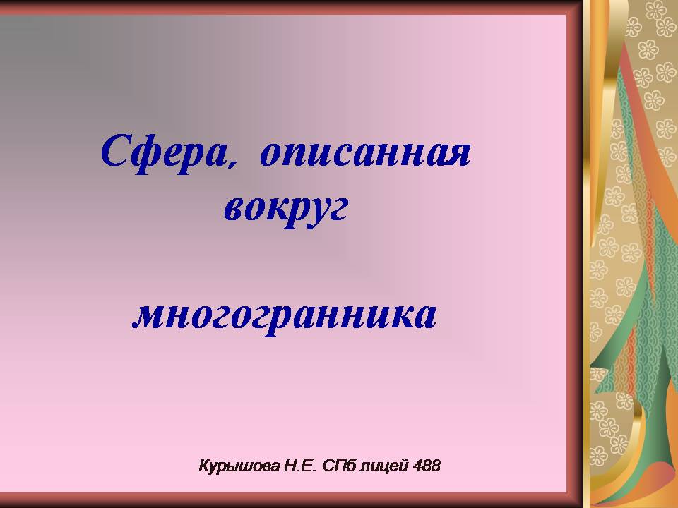 Презентация по геометрии 10 класс: Сфера и многогранники