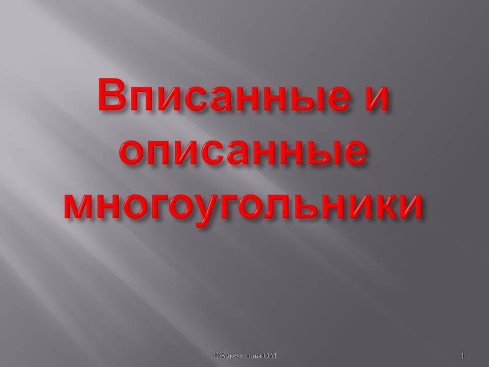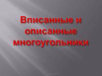 Презентация по математике 9 класс: Вписанные и описанные многоугольники