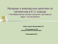 Презентация по алгебре 9-11 класс: Задачи на экстремум