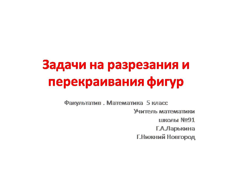 Презентация по математике: Задачи на разрезание фигур
