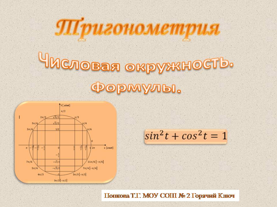 Презентация по алгебре: Тригонометрия, числовая окружность, формулы