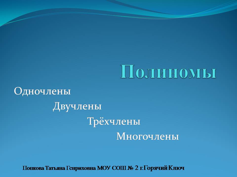 Презентация по алгебре 7 класс: Полиномы - одночлены, многочлены