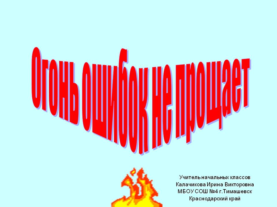 Презентация по ОБЖ 1 класс, - Огонь ошибок не прощает.