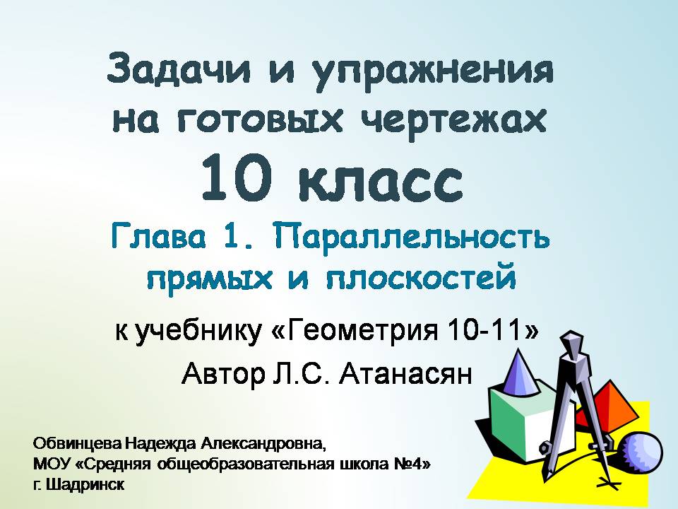 Презентация по математике 10 класс: Задачи на готовых чертежах