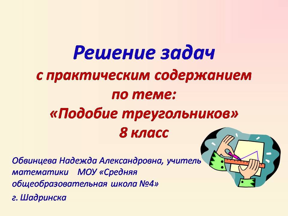 Презентация по геометрии 8 класс: Подобие треугольников, решение задач