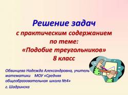 • Презентация по геометрии 8 класс: Подобные треугольники, задачи