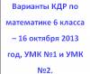 Варианты КДР по математике за 6 класс - 16 октября 2013 год