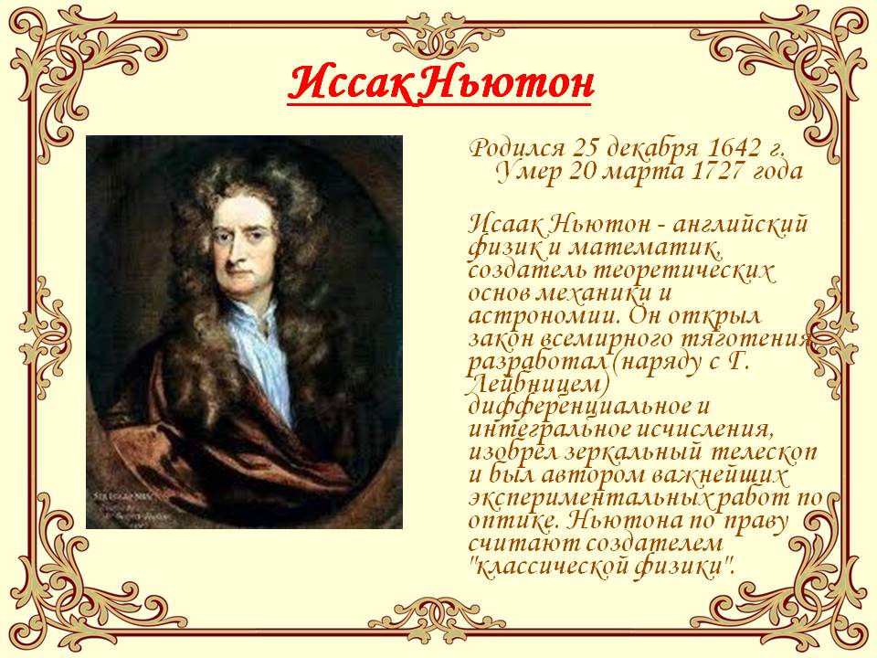Презентации по физике, - Исаак Ньютон