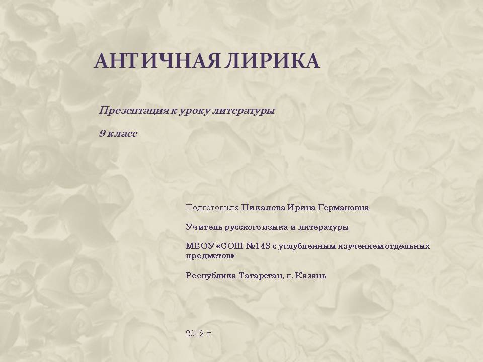 Презентация по литературе 9 класс, - Античная лирика.