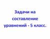 Задачи по математике для учеников 5 класса на составление уравнений.