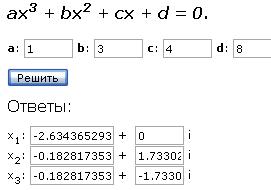 Решение кубического уравнения онлайн