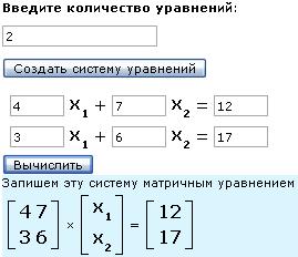 Решение систем линейных уравнений онлайн,-матричным способом.