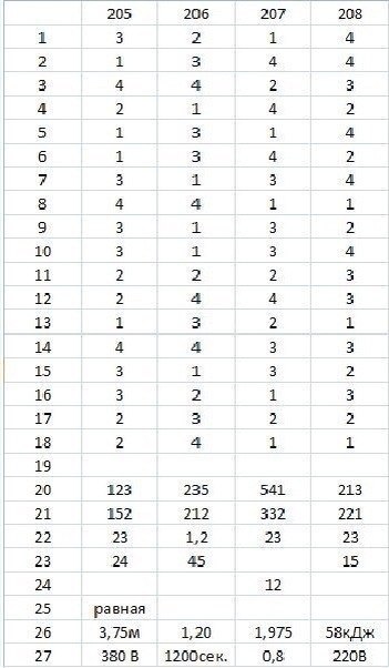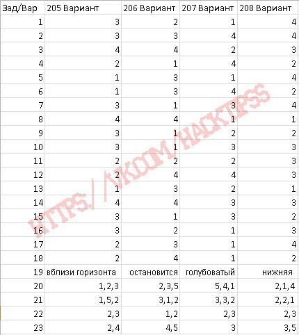 Ответы на варианты: №205-208.