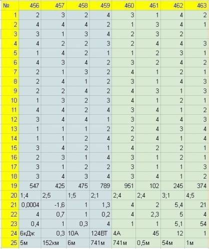 Ответы на варианты: №456-463.