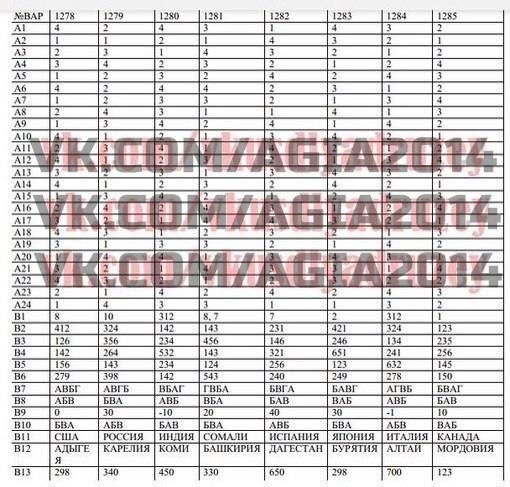 Ответы ГИА по географии - 3 июня 2014