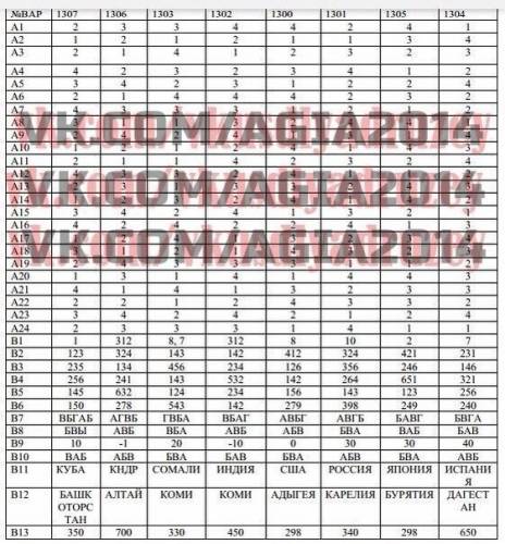 Ответы ГИА по географии - 3 июня 2014.
