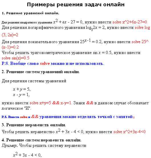 Данный сервис позволяет бесплатно решать математику онлайн, а именно: