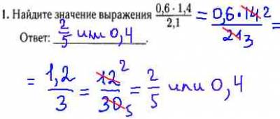 В данном решении задачи ГИА 9 класса по математике из модуля "Алгебра", мы воспользовались перестановкой запятых - в знаменателе и числителе, так удобней сокращать дробь. В конце использовали способ перестановки запятой и дописывания нуля - получили 12/30=2/5=0,4.
