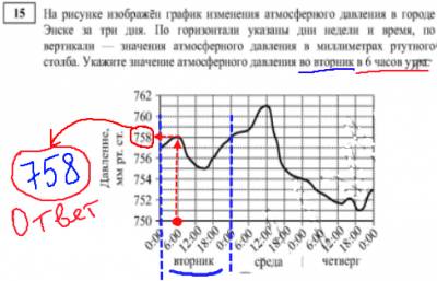 15 задача вообще простая - смотрим на график реальной зависимости, находим вторник и 6 часов утра, - это 758 мм.рт. столба.
