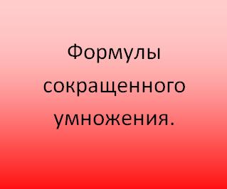 • Презентация по алгебре 7 класс: Формулы сокращенного умножения