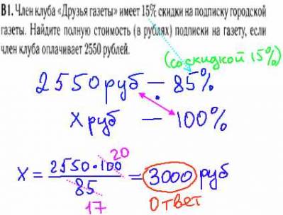 Задача ЕГЭ по математике B1 , решение: проценты, скидка.