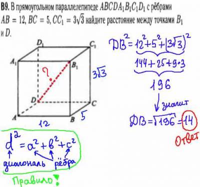 Задача ЕГЭ B9, Прямоугольный параллелепипед.