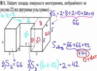 • Задача ЕГЭ B11: Площадь поверхности многогранника..