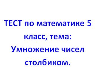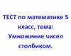 ТЕСТ по математике, 5 класс, тема: "Умножение чисел столбиком".
