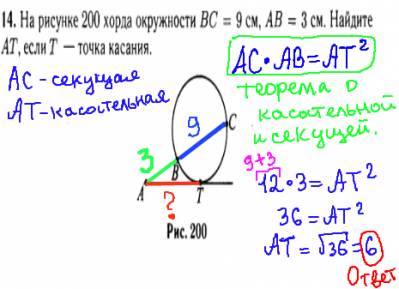 Эта задача ГИА по математике с очень редким правилом, в ней применяется теорема о касательной и секущей: произведение всей секущей и ее внешней части равно квадрату произведения касательной. Зная эту теорему, задание легко решается, в ответе получим 6.