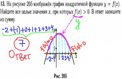 Простое решение задания ГИА из модуля Алгебра, где мы выписываем значения x при y>0, а затем складываем их, получим в ответе 7.