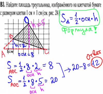 Задача ЕГЭ B3: Площадь треугольника на клетчатой бумаге.