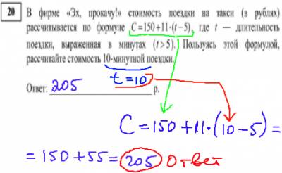 В 20 задании из реальной математики - просто подставим в формулу число 10 вместо времени t и посчитаем, получим 205.