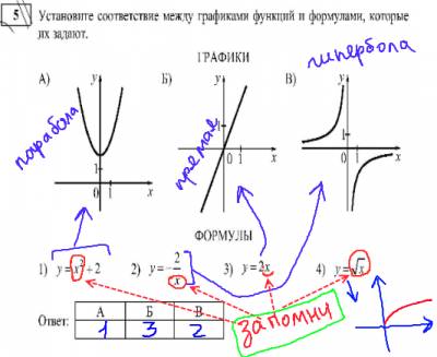 В 5-ом задании по математике мы устанавливаем соответствие между графиками функций и формулами, которые их задают. Обратите внимание на обведенные красным цветом x, запомните данные случаи.