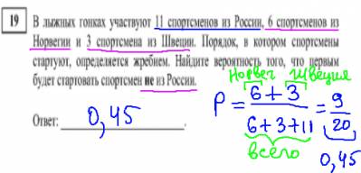 В 19-ом задании ГИА по математике 2013 по формуле нахождения вероятности, найдем P=0,45.
