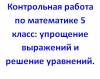 Контрольная работа по математике 5 класс: упрощение выражений и решение уравнений.