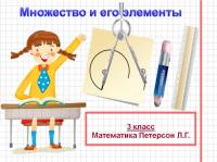 Из презентации ребята узнают понятие множества, познакомятся с определением элемент множества. Кроме того, дети научатся определять принадлежность элемента множеству (принадлежит или не принадлежит). Данная разработка будет полезна учителям на уроках математики в 3 классе.