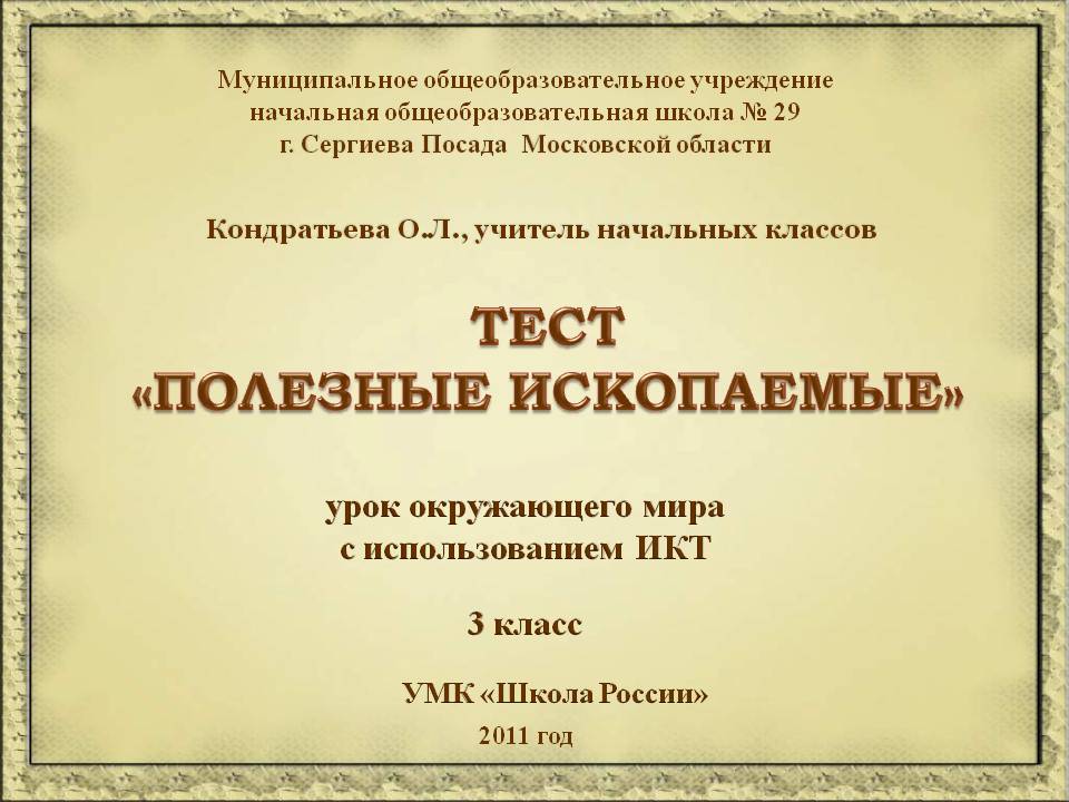 • Презентация по окружающему миру - Полезные ископаемые, тест