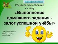 Скачать детскую презентацию, на тему - Выполнение домашнего задания - залог успешной учёбы