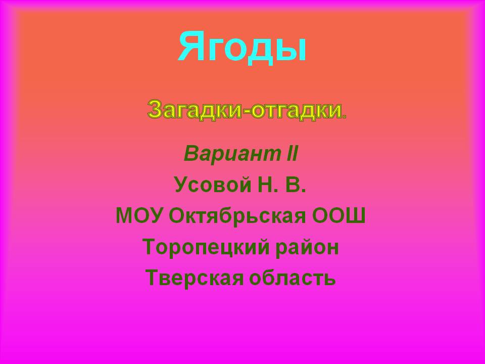 Скачать детскую презентацию, на тему - Загадки и ответы о ягодах