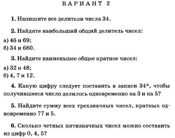 Скачайте 2-ой вариант контрольной работы по математике для 6 класса с заданиями по теме - Наибольший общий делитель , взаимно простые числа . Также в контрольной рассматривается задание на нахождение наименьшего общего кратного .