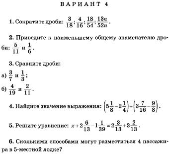 Контрольная работа по математике 6 класс: Обыкновенные дроби
