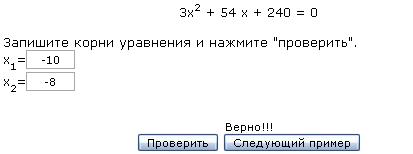 Генератор квадратных уравнений - создает уравнения, которые вы можете попробовать решить. Все задания по математике выводятся в случайном порядке, на которые нужно ответить.