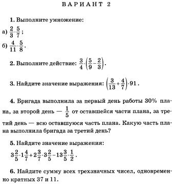 • Контрольная работа по математике 6 класс: Обыкновенные дроби